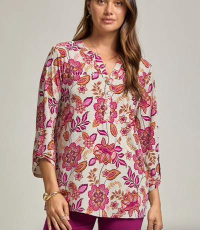 This is our classic blouse, updated Lizzy style in a classier look! We love the faux pockets on the front with nice neckline with easy, relaxed fit. Travel friendly and wrinkle-free.