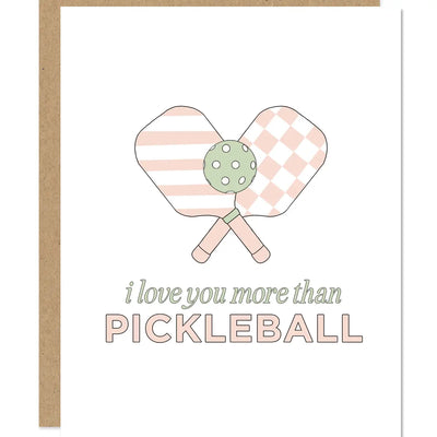 Show your love in a fun, sporty way with our Pickleball Valentine's Day card! This quirky card features a playful message, "I love you more than Pickleball." Blank inside, it's perfect for writing a personal love note. Comes with a kraft envelope. Dimensions: 4.3 x 5.5 in (10.9 x 14 cm).