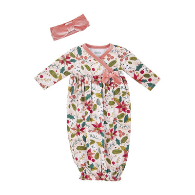 2-piece set. Cotton spandex kimono gown. Comes with velvet bow headband.