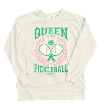 Rule the pickleball court in style with our Queen Of Pickleball Sweatshirt. This unlined crew neck features a high stretch material for ultimate comfort and a split hem for extra movement. Plus, it runs large for a relaxed fit. Made with 96% polyester and 4% spandex, you'll stay cool and comfortable while looking like the ultimate pickleball queen.