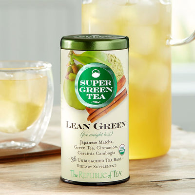 Lean Green: Skinny never tasted so good. Green tea and matcha are known for increasing metabolism.* To this base, we added cinnamon, which can suppress your appetite and alleviate cravings,* and the skin of the Garcinia Cambogia fruit, which studies have shown inhibits fat production.* Perfect for any time of day, a cup of this spicy-sweet tea will keep you on track toward your weight-loss goals. Green tea contains less than a quarter the amount of caffeine per cup than in a similar-sized cup of coffee.