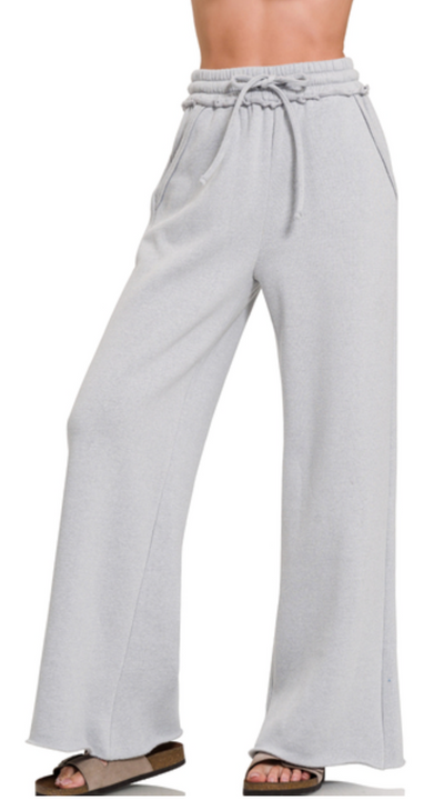 Stay cozy and stylish in our Riley Fleece Sweatpants! With exposed seams and a wide leg design, these sweatpants are perfect for lounging at home or running errands. Made with fleece material, they'll keep you warm and comfortable all day long. A must-have for any wardrobe!