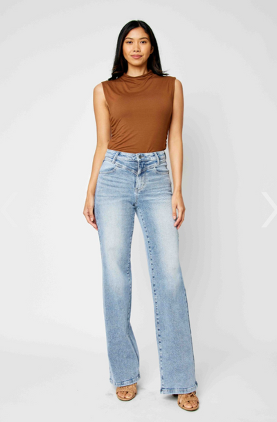 Step back in time with the playful Sara Front Yoke Retro pants. The high waist and wide leg give a retro vibe, while the front yoke adds a fun twist. Perfect for those who don't take themselves too seriously (wink). Go for a quirky look with these pants!