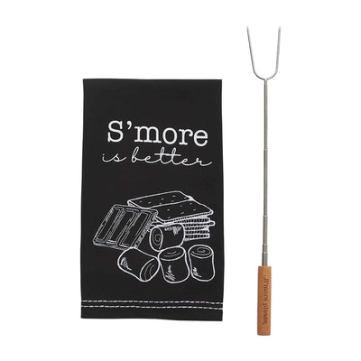 Embroidered cotton hand towel. Comes with expandable wood and metal roasting stick.