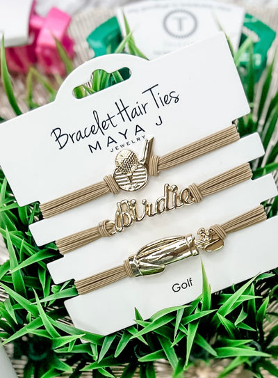 Never lose your hair ties again! These Sport Bracelet Hair Ties are perfect for on-the-go athletes. They double as a stylish bracelet and are great for golf and pickleball. Keep your hair up and your style game on point effortlessly. (Hair up, style on point, game on!)