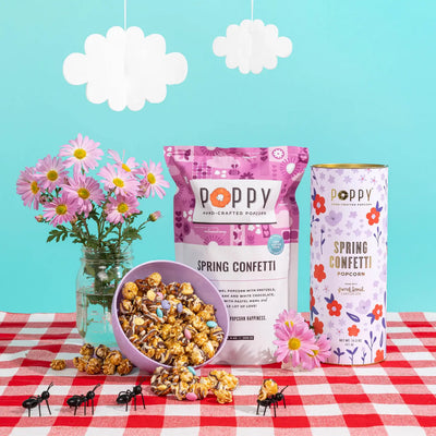 Who knew popcorn could be this pretty? Our famous Salted Caramel popcorn with caramelized pretzels, drizzled in craft French Broad Chocolate™ dark & white chocolate.