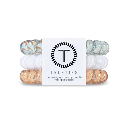 Hold your hair and enhance your style with TELETIES. The strong grip, no rip hair tie that doubles as a bracelet. Strong, pretty and stylish, TELETIES are designed to withstand everyday demands while taking your look to the next level.