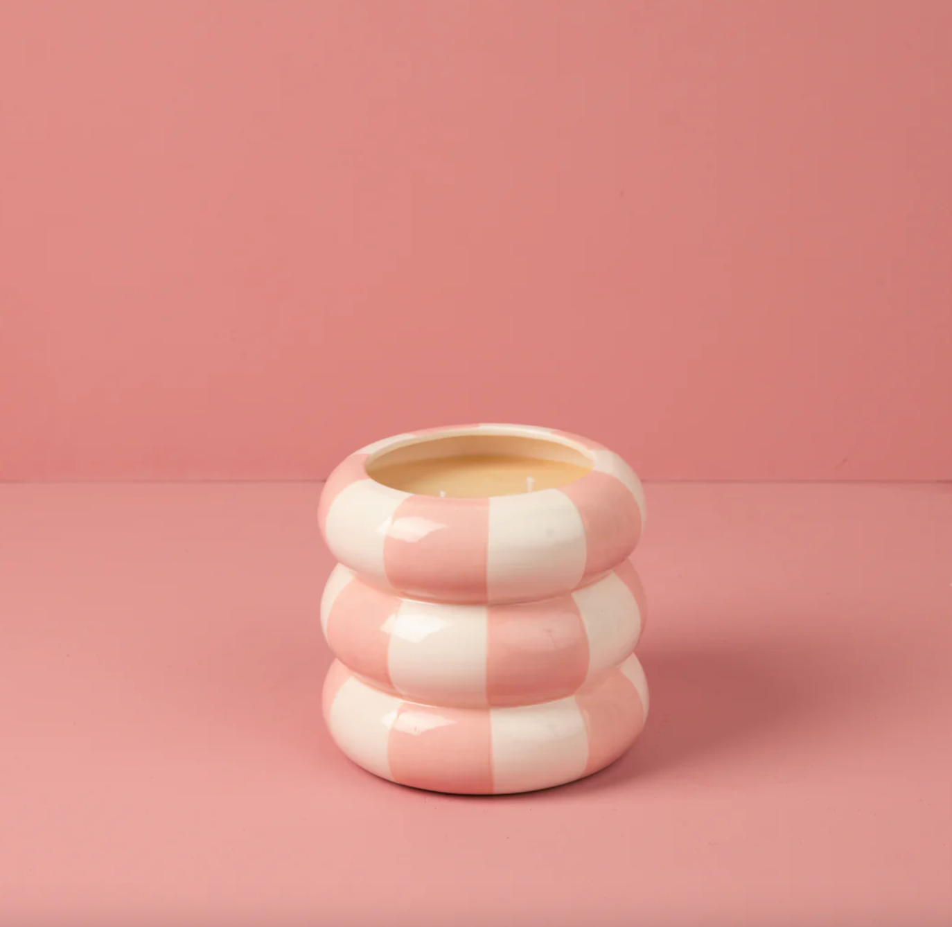 Add a playful pop of style with Sweet Grace Candle #074. Featuring a charming ceramic vessel adorned with a pink checkered pattern, this candle is a statement piece all on its own. Filled with 25.5 oz of our exclusive soy-blend wax, it offers up to 90 hours of burn time, filling your home with the beloved Sweet Grace fragrance you know and love.