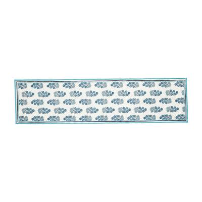 Enhance your dining experience with this exquisite Blue Block Print Table Runner. Crafted from 100% cotton, this table runner features a captivating block print design that adds a touch of elegance and sophistication to any table setting. Measuring 18 inches by 72 inches, it is the perfect size to complement a variety of table shapes and sizes, providing a stylish foundation for your dining decor. The high-quality cotton material ensures durability and easy maintenance, making it an ideal choice for both everyday use and special occasions. Transform your dining area with this beautiful patterned table runner that effortlessly combines functionality with aesthetic appeal.