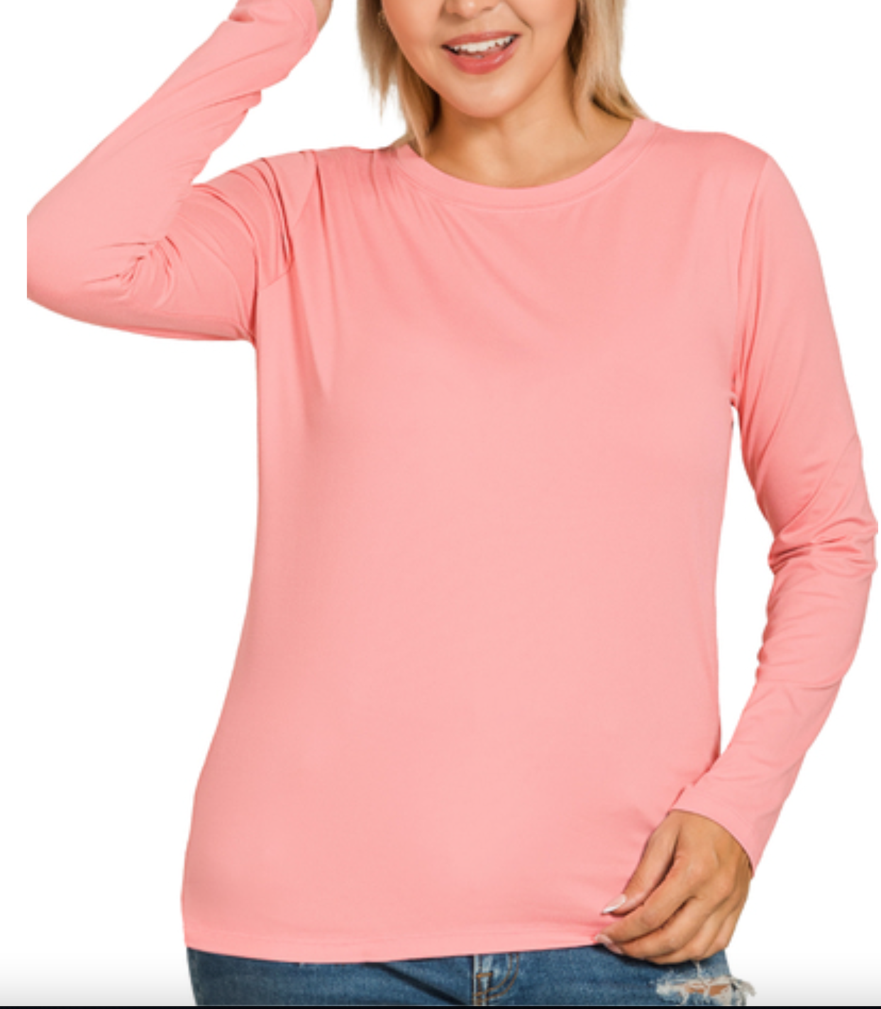 Indulge in comfort with the Eliana Long Sleeve Tee. Made from brushed microfiber, this tee is buttery soft and offers the perfect stretch and recovery. Keep warm and cozy while looking stylish. (Buttery soft, warm, perfect stretch & recovery)