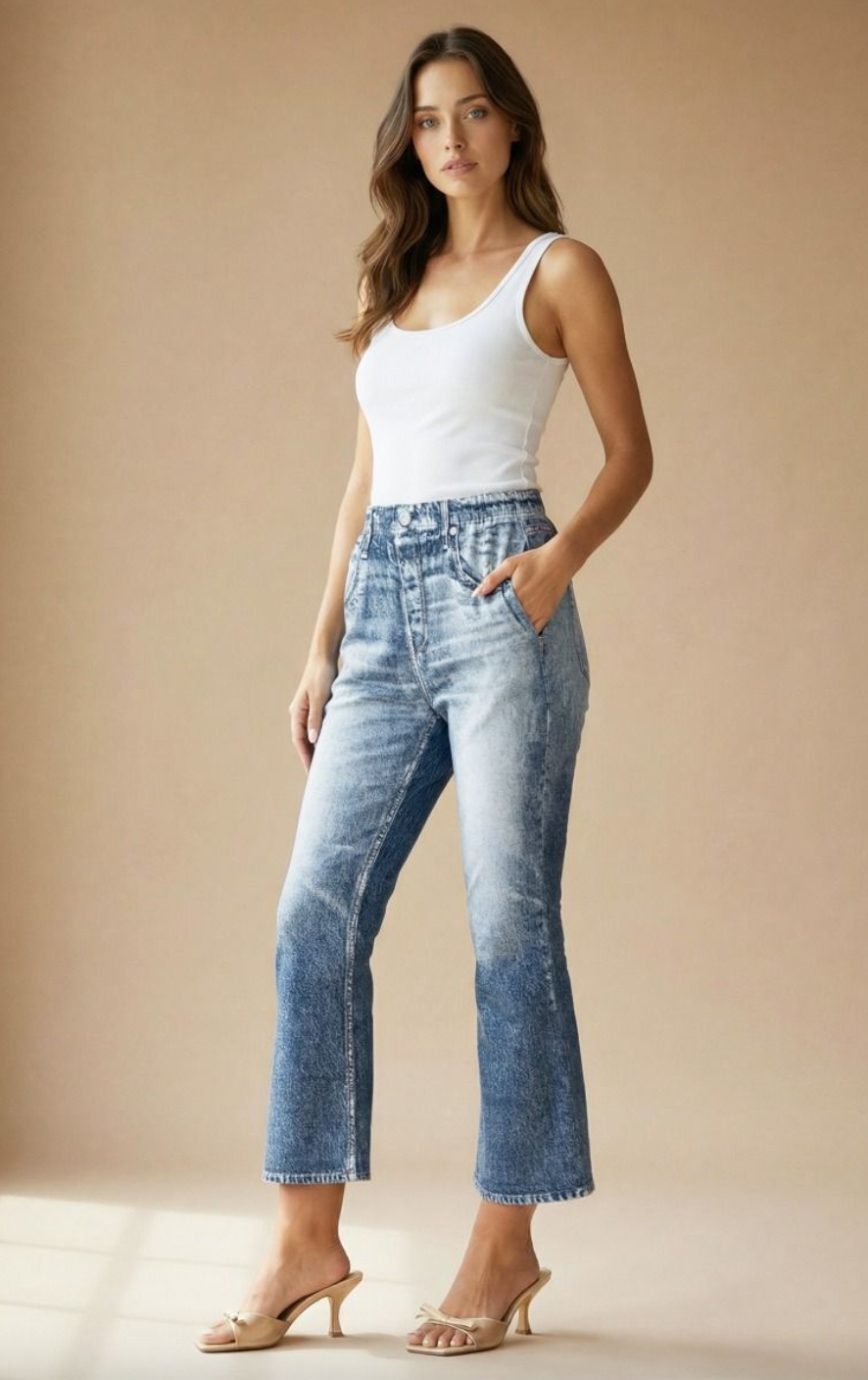 Wait till you try these — looks like denim, feels like pure ease! Crafted with advanced printing for that real-jeans illusion, they’re buttery-soft, breathable, and made for all-day comfort. Trendy bootcut legs and a pull-on waistband make them your new everyday essential. Inseam: 24 1/4"95% Cotton 5% Spandex