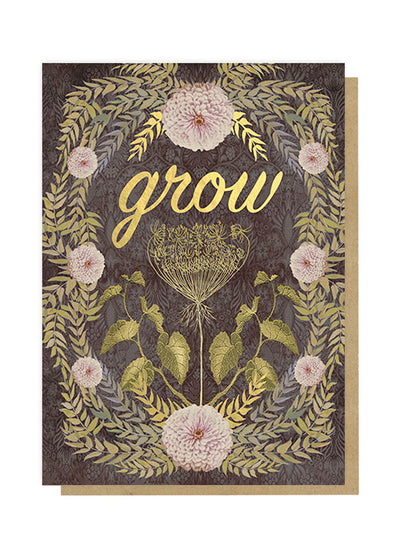 PAPAYA’s classic Grow Greeting Card is a fan favorite illustrated with original artwork of delicate green leaves and dusty pink dahlias; it is sure to brighten your day. Perfect for all occasions such as wedding, anniversary, business, bridal, baby, birthday, mother’s day and graduation.