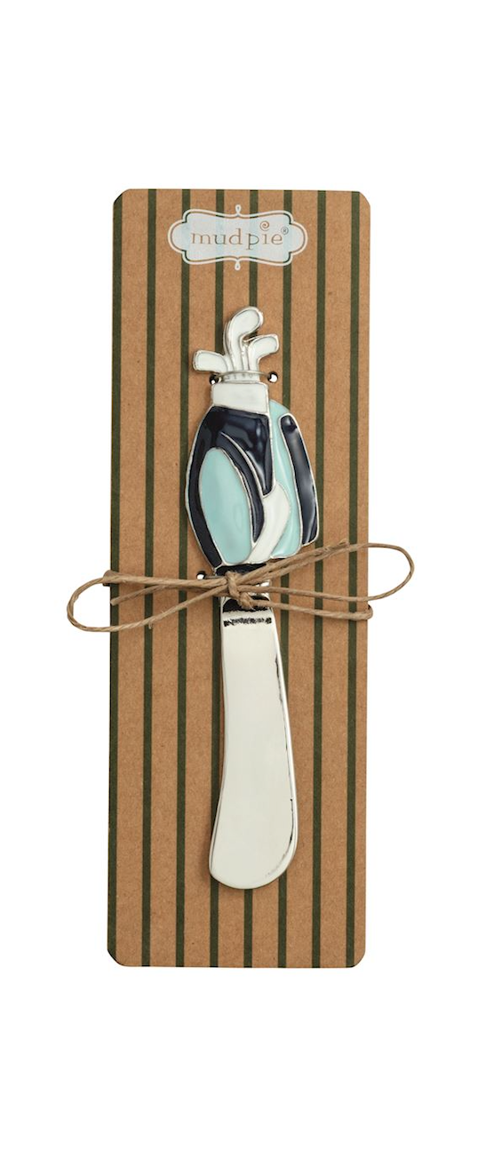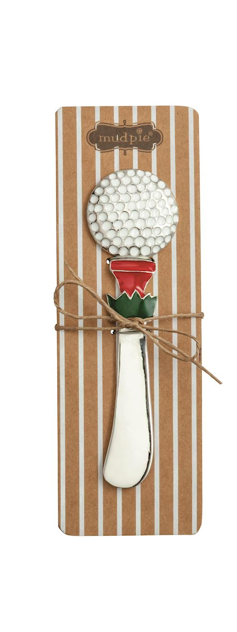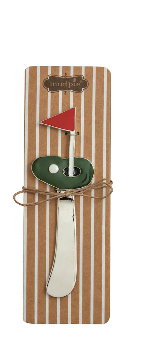 Metal spreader with cast golf themed handle.