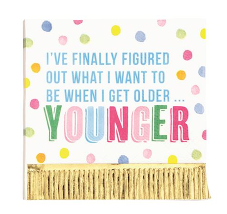 Elevate your celebration with these witty paper cocktail napkins featuring a sophisticated gold fringe or scallop edge. This pack of 12 delivers both style and humor, perfect for birthday bashes where personality matters. The premium finish catches the light beautifully while keeping guests entertained with clever, tongue-in-cheek designs. Ideal for toasting milestones with a side of sass—because every birthday deserves a little attitude.