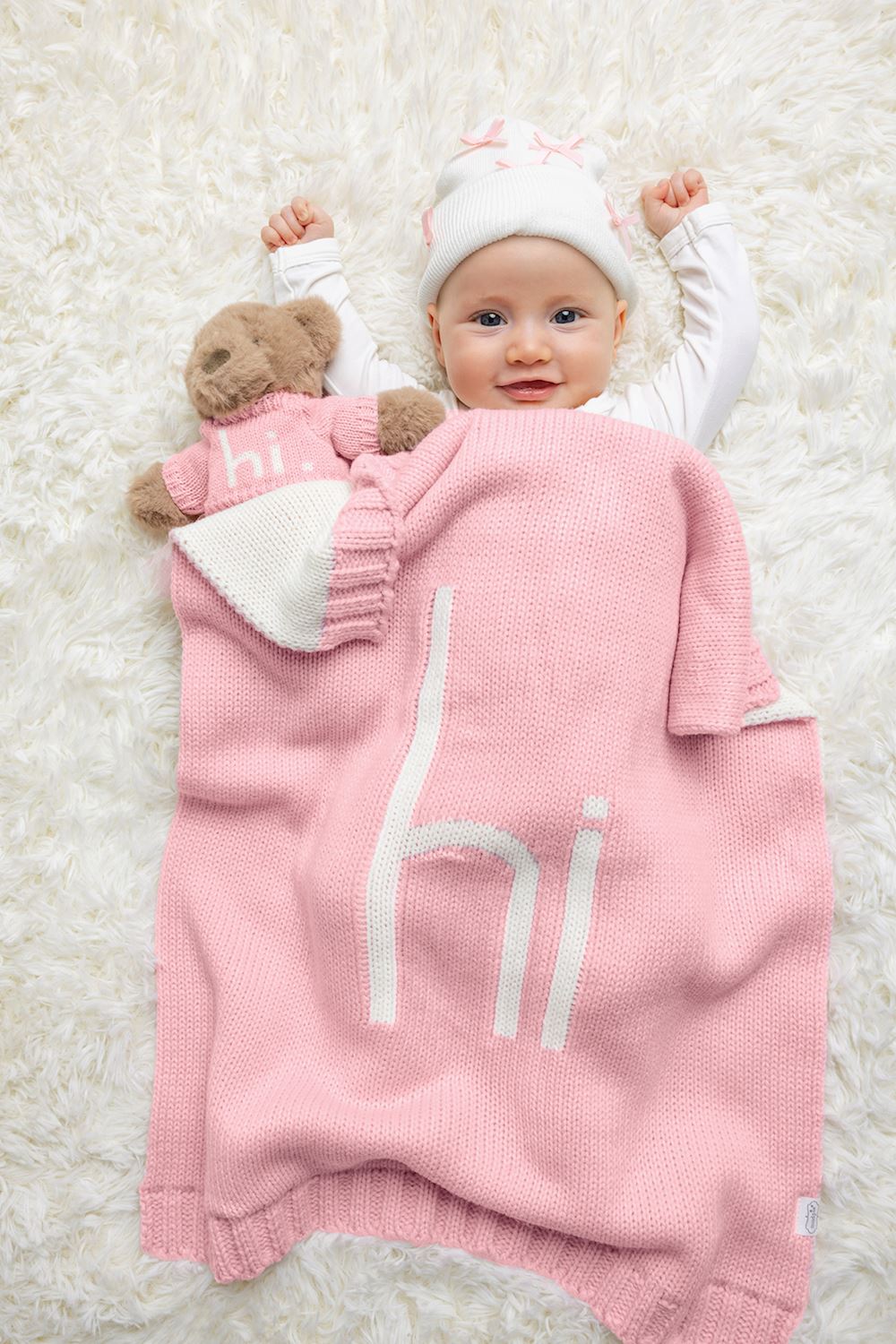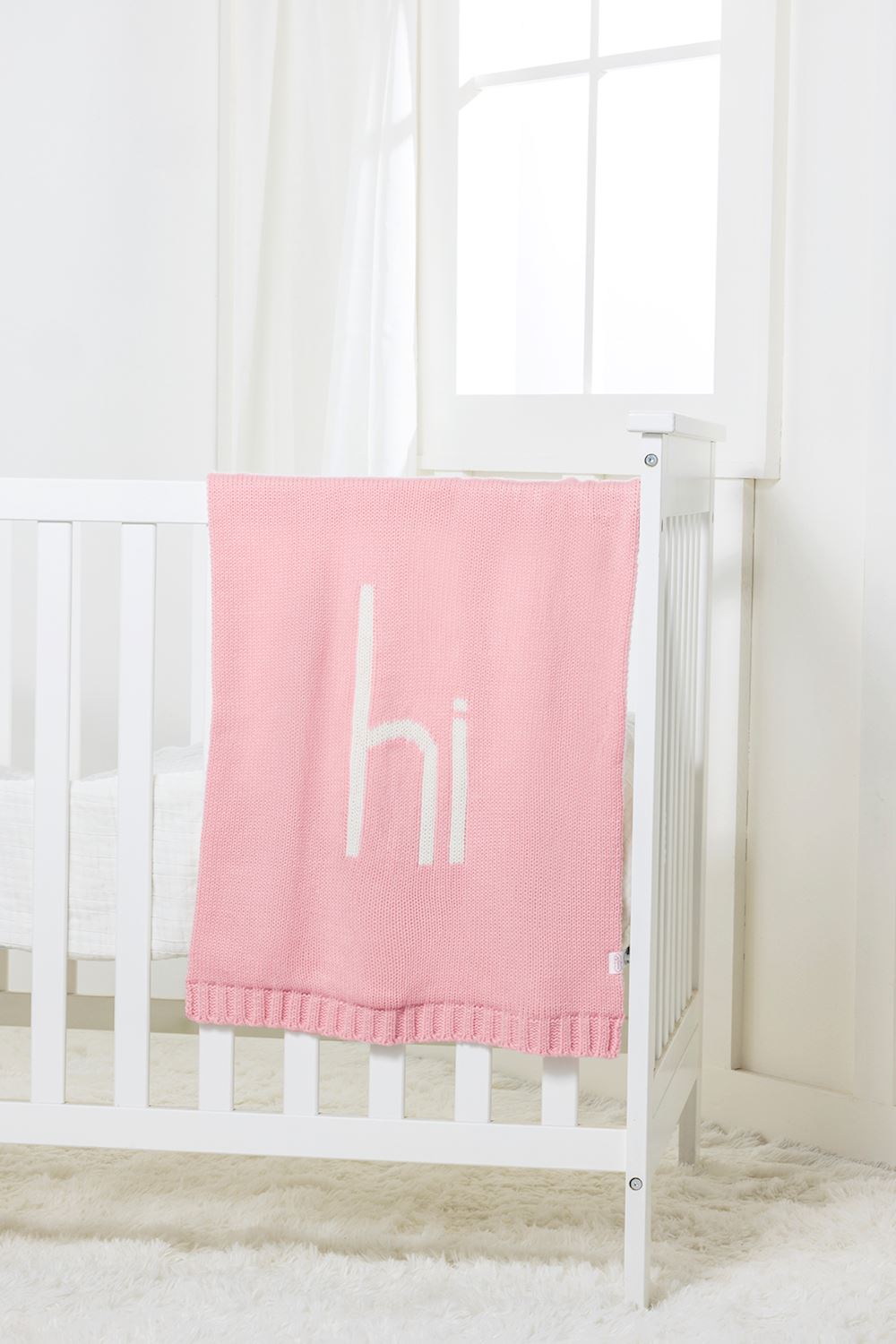 Welcome your little one in style with the Hi Baby Blanket—a cloud-soft knit designed for those precious first moments. Crafted from gentle yarn with a charming ribbed edge, this blanket is perfectly sized for newborn photo sessions and everyday snuggles. Whether you choose soft pink or calming blue, it's the ideal keepsake that captures those "hi, I'm new here" milestones. Cozy, adorable, and ready for its close-up!