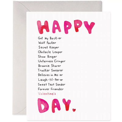 Declare your love with the BFF Valentine's Day Card, featuring a heartfelt message celebrating all the ways your best friend supports and stands by you. Be their "Wolf Packer" and "Show Binger" with this exclusive, premium card.