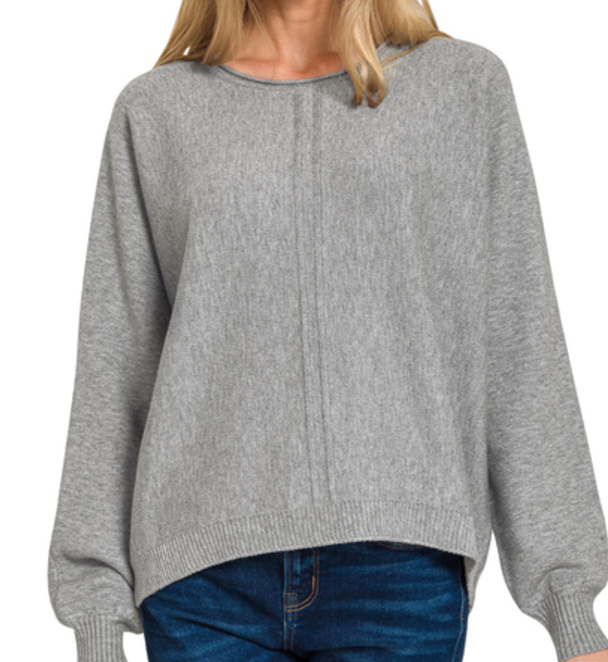 VISCOSE FRONT SEAM ROUND-NECK SWEATER