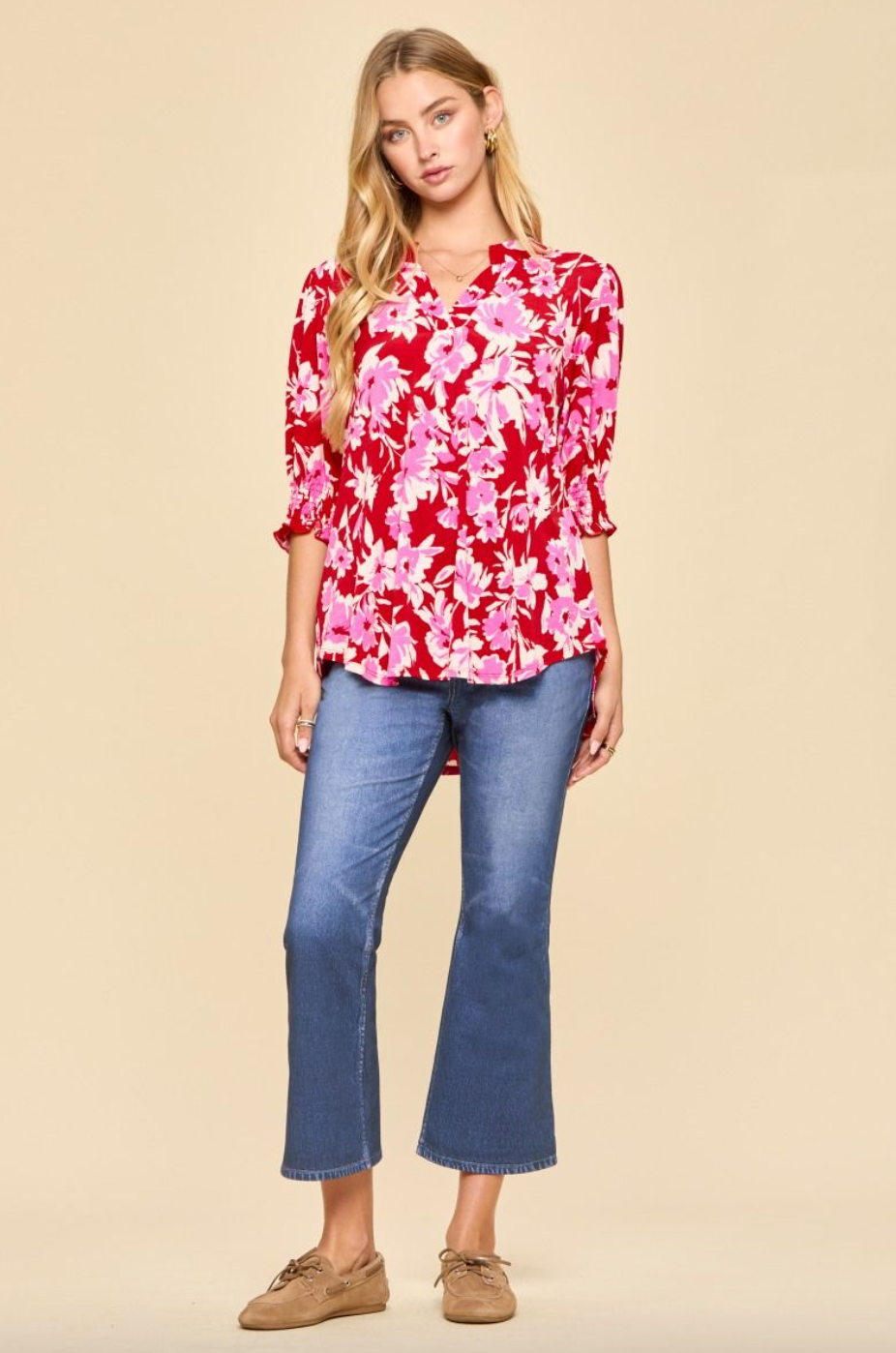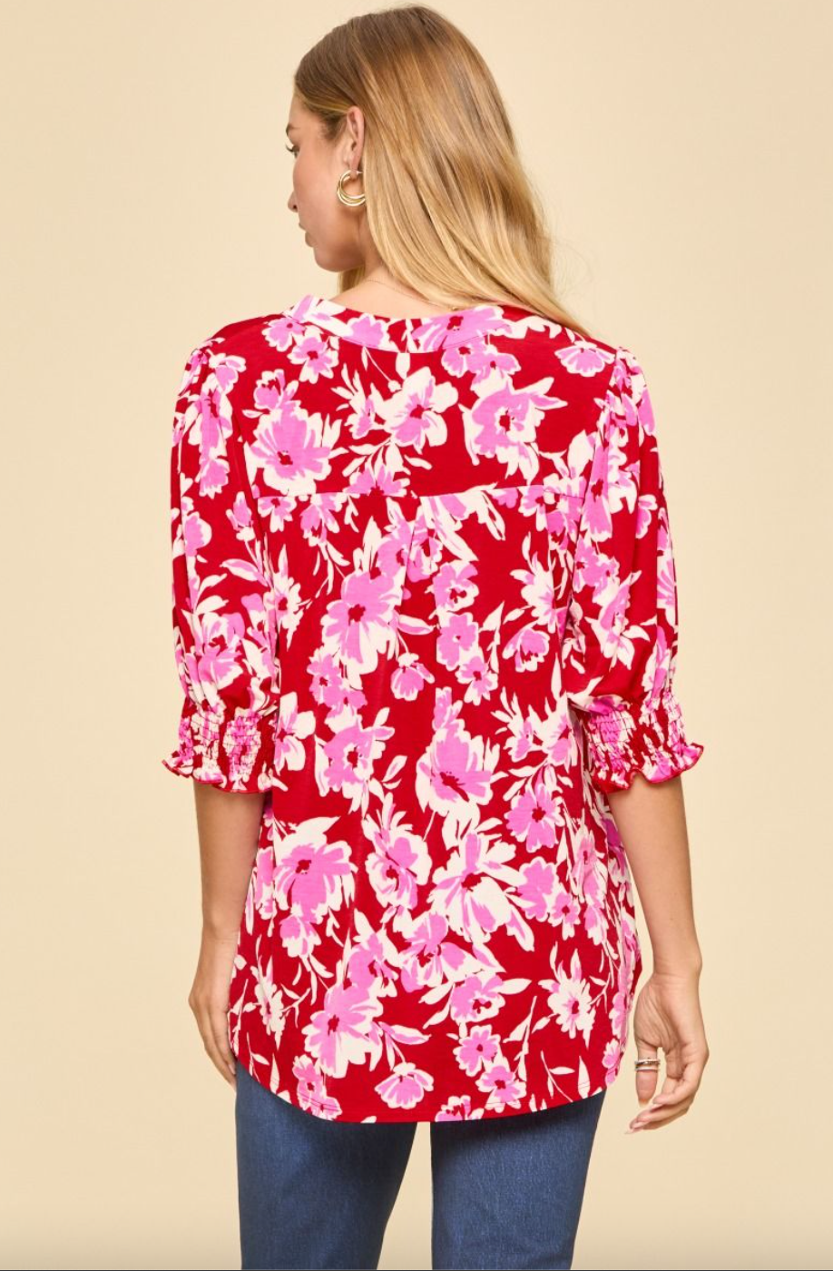 Back by popular demand: the Lizzy Smocked Top. This charming short-sleeve top pairs effortless elegance with everyday comfort. Featuring a mandarin collar, subtly puffed sleeves, and delicate smocked detailing, it offers a feminine, standout look. Made from wrinkle-free fabric, it keeps you polished from morning to night.