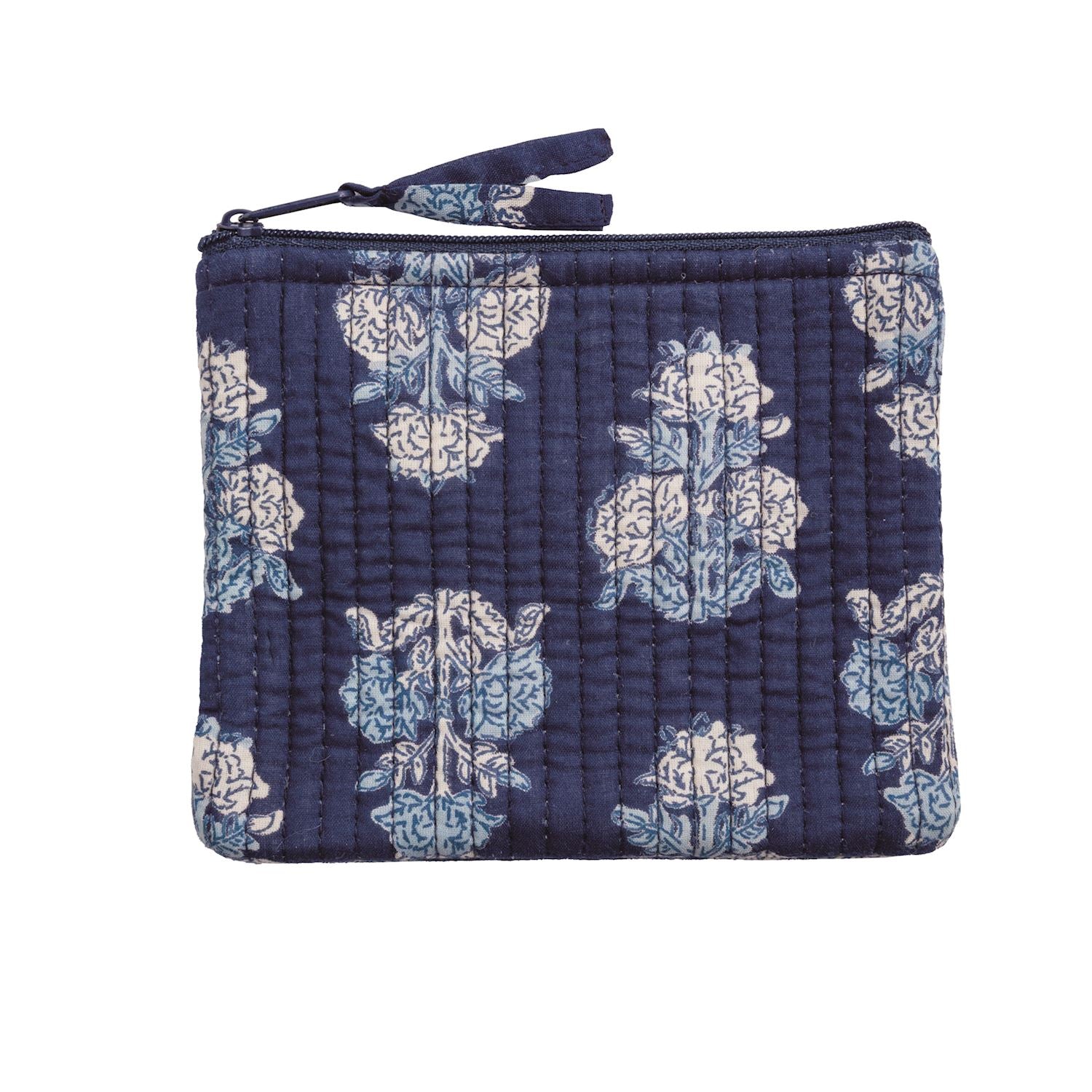 Organize in style with this charming quilted cotton carry-all case. Featuring a bold block print design, it's perfect for storing cosmetics, notions, or everyday essentials. The interior boasts a contrasting stripe lining that adds a pop of color, while a secure zipper closure keeps your items safe and protected. Lightweight and durable, this small case is an ideal companion for travel or daily use.
