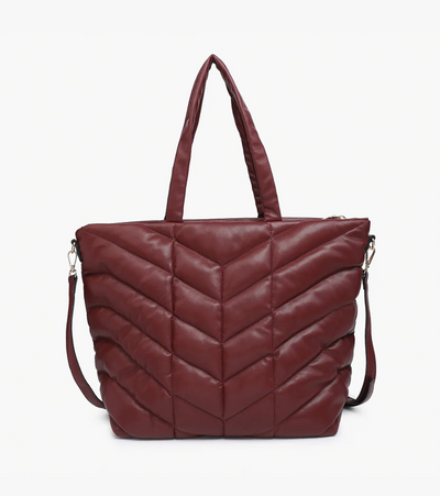 The Brinley Quilted Chevron Tote is the ultimate fall accessory, blending elegance and practicality for both everyday use and travel.