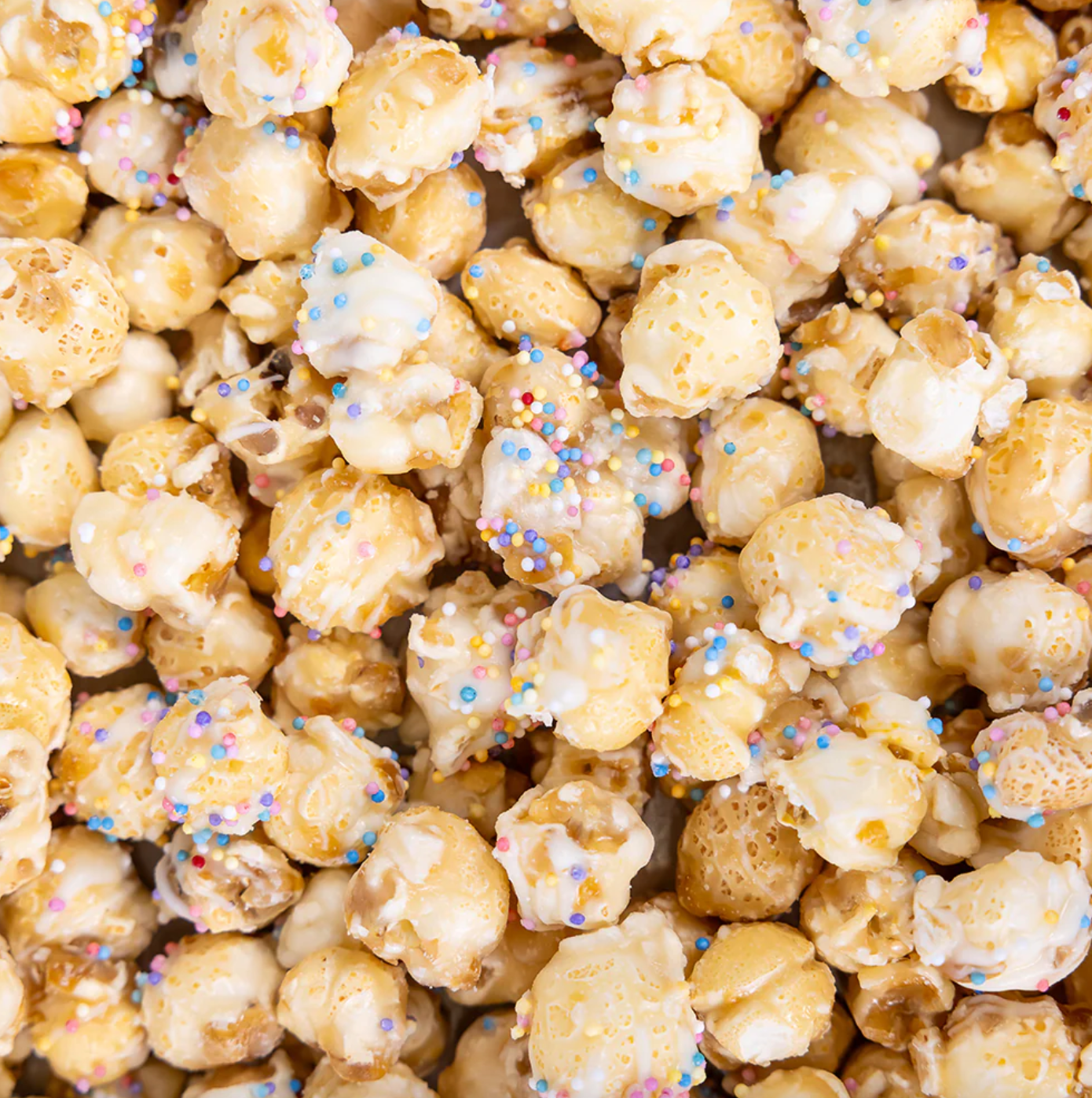 A sugar-cookie-flavored delight drizzled with white-chocolatey icing and topped with colorful sprinkles. The perfect mix of creamy, crunchy, and festive for Valentine’s season.