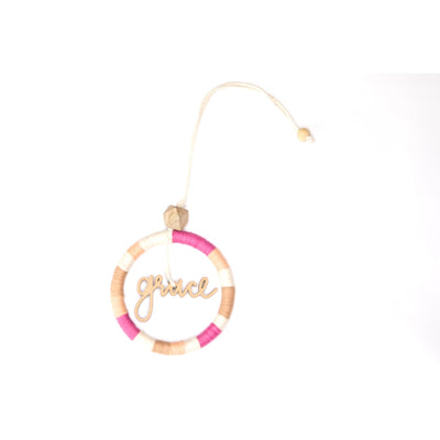 Stop, drop & Go! Add 3 - 4 drops of your favorite essential oil to the wood bead & hang. We love them in our cars, home offices, bathrooms, and even on our little one’s stroller handle! Ring - 3.5” / Hanging Rope - 8”