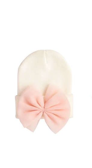 Adorable knit newborn hat in soft pink and white, perfect for welcoming your little one in style. This charming design features a cozy turned brim for extra warmth and sweetness, topped with your choice of a statement mesh bow or delicate grosgrain mini bows. Gentle on delicate skin and oh-so-precious for photos and everyday wear. The ideal gift for baby showers or new arrivals!