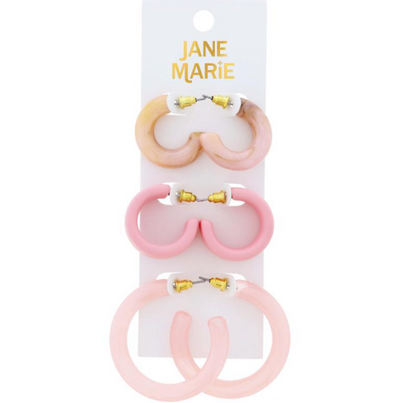 Get three times the fun with The Trio! Earrings. This set features three colorful resin hoops - a wide hoop, and two smaller hoops measuring 1" and 1.65" from top to bottom. Jazz up any outfit with these playful earrings.